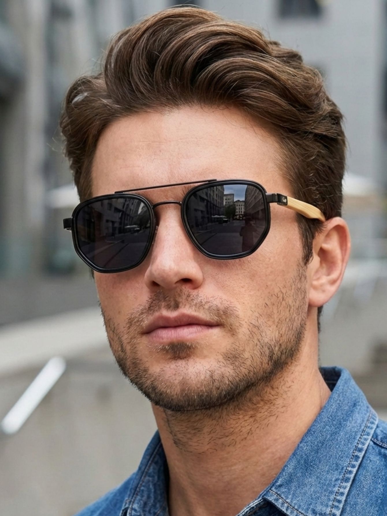 ÓCULOS DE SOL ARIZONA WOOD - PRETO COM BAMBOO CLARO